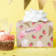 This personalised ice cream birthday gift wrap is hand-illustrated -- by a human, me! Its pastel colours of pink, white, cream, and cherry red evoke nostalgia and tradition. This personalised ice cream pattern features vintage-style watercolor strawberries and strawberry ice cream cones on a taupe, kraft brown background. I hand-painted the ice cream cones and strawberries on paper, with brushes, the old-fashioned way, giving them a vintage look. Your personalisation goes in script typography in a coordinating strawberry coloured banner. The colours of red, pink, and cream make this pattern is perfect for any occasion, from birthdays and holidays to everyday gifts.
