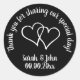 Custom handlettered wedding thank you stickers for party favours, gifts etc. Elegant black and white typography design with double heart logo. Stylish handwritten calligraphy template with date and names of newlyweds couple / bride and groom. Customisable background colour. Can also be used as round envelope seals. Trendy party supplies and accessories for married couples. Pretty handlettering with interlocking hearts graphic.