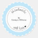 This cute personalised round party favour sticker features a light blue ruffled edge and a ribbon stitched border, a black heart and the words "Handmade with love". Perfect for your handmade goodies, crafts, gifts, candy bags, jars, cans, gift boxes, party favours and more! Stand out with these unique custom sticker seals. Click the "Customise it!" button to change the text size, text colour, font style and more! Please note: the round ribbon stitch border has a ribbon stitch appearance.