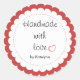 This cute personalised round party favour sticker features a ruffled edge and a ribbon stitched border and a open heart.  Perfect for your handmade goodies, crafts, gifts, candy bags, jars, cans, gift boxes, party favours and more!  Stand out with these unique custom sticker seals.  Click the "Customise it!" button to change the text size, text colour, font style and more!   Please note:  the round ribbon stitch border is a ribbon stitch appearance.