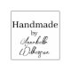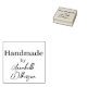 This custom stamp features a simple but professional design. The top of the stamp features the word "Handmade" printed in a sophisticated font, followed by a sample name printed in script so it appears as a signature. The name on the stamp can be personalised to include your own name, business or company name, or other custom message or quote.