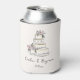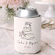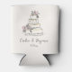 This can cooler features a cream background with a blush floral cake sketch in a minimalist, elegant style. The cream and blush palette pairs beautifully with handwritten script names and date for a personalised wedding favour. Customise using the editable text template with the bride and groom’s name and celebration date. A simple yet playful detail for welcome bags, rehearsal dinners, or reception bar setups.