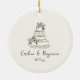 Custom Handwritten Blush Cream Doodle Wedding Cake Ceramic Tree Decoration