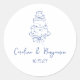 Vintage Custom Handwritten French Blue Doodle Wedding Cake Classic Round Sticker