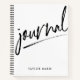 A stylish modern journal with the word " journal " in a beautiful handwritten script calligraphy typography style. Write down your thoughts, ideas and feelings in this simple minimalist notebook . Personalise with name. Great gift idea. ©Marisu Valencia