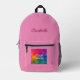 Custom Modern Elegant Cute Simple Trendy Template Upload Image Photo Picture Or Business Logo Add Handwritten Script Name Or Text Pink Solid Colour Accessories / Bags & Wallets / Backpack.