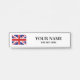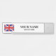 Custom hanging desk name plate with British Union Jack flag. Patriotic name plate template with custom job title or professional company name. Make your own with a custom name and formal job function like executive producer, manager, ceo, doctor, janitor. Elegant typography template. Perfect for business boss, office employee, coworkers, colleagues, coach, school teacher, dean, principal, office workers, real estate agent, director, dentist, producer, receptionist, attorney, lawyer etc. Available in silver, rose gold and black color. Add your own logo optionally and stick / screw to the room door or place on your desk table. Flag of GB Great Britain, UK United Kingdom, England.