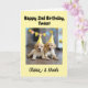 Celebrate the twins’ 2nd Birthday! Congratulate the adorable 2-year-old twins with this special and fully personalised birthday card. This 2nd birthday congratulations card features two cute puppies and a sweet twins poem inside (which you can easily remove if you prefer) and can be customised with the twins' names.