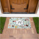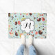 Our Happy Birds in Fields of Flowers design doormat is so pretty, fun, whimsical, and colourful you're sure to fall in love with it! A cute whimsical birds, flowers, and hearts design in green, cream, coral, chocolate brown, and blue, this fun, colourful, whimsical door mat features a white flower shape banner that you can easily personalise with your monogram initial!