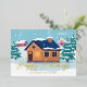 This beautiful custom real estate gold foil holiday card is perfect for a realty company located up north. A beautiful home drawing of a house lined with snow and smoke coming out of the chimney next to green trees. A realtor can keep Happy Holidays in cursive script or customise with their own seasons greetings. Add your personalised message on the back.
