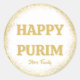 Custom Happy Purim Gold Glitter Elegant Classic Round Sticker