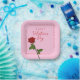 Serve sweet treats in style with this Happy Valentine’s Day rose square paper plate. Featuring a soft pink background and a classic red rose illustration, this design adds a romantic and elegant touch to any Valentine’s Day celebration.