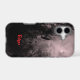 A custom iPhone case with red grunge type letters and a spooky Halloween sky with misty, dark trees along a spooky road, gothic ravens and a cloudy full moon with a red mist.