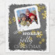 Unique, classic, trendy, pretty and decorative Holiday sticker. Fun 'Have A Holly Jolly Christmas' quote text written in typography on black and grey chalkboard background, with faux gold snowflakes pattern. With room to customise or personalise with photo of your choice.