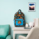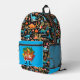 Kids Customised Monogramed Dinosaur Backpack With Colourful Patterns Of Dinosaurs On Black Background