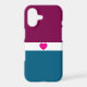 Show your affection with this custom phone case featuring a vibrant pink heart set between bold magenta and teal color blocks. The modern color block design offers a stylish and loving touch to your device. Compatible with iPhone 17 and other popular models, and customizable with your name in elegant script for a personal flair. This case blends emotional expression with minimalist design, making it perfect for everyday use or as a heartfelt gift.