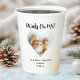 Celebrate your special day with these cute custom cat wedding paper cups. Simply personalise with your cat's name, your names, date, and your cat's photo. This design includes many different ways of personalisation, both in writing and in a photo. This design includes personalised wording, a photo of your cat cut to the shape of a heart, and the phrase "Drinks On Me". Enjoy!