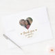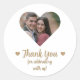 Celebrate your special day with these cute custom wedding favour stickers. Simply personalise with your photo. This elegant design includes gold-coloured script font that says "Thank you for celebrating us!". This design also includes two gold hearts and a place shaped like a heart where you can add your photo. Enjoy!