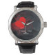 A striking watch featuring a bold red heart on a dark background scattered with small hearts, with the passionate words "I LOVE YOU!" in white script and a customisable name below. The perfect way to carry love on your wrist every day. Ideal for Valentine's Day, anniversaries, engagements, or as a deep romantic surprise. Customise with your special name! High-quality silver case with black leather strap | Quartz movement | Water-resistant