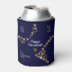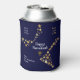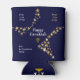 Custom Hebrew Stars HANUKKAH Can Cooler. Stylish blue and gold personalised Happy Hanukkah can cooler - an ideal stocking stuffer or favour giveaway for your family, friends or clients during Hanukkah. The heading says HAPPY HANUKKAH in white typography with PEACE, LOVE & JOY in gold coloured typography in the corners. PEACE, LOVE, JOY is written in HEBREW. This is set against a background of gold-coloured stars against midnight blue. The main heading and placeholder name are CUSTOMIZABLE, so you can add your name/greeting or create your own text. The design is repeated on the back, and on the base there is a CUSTOMIZABLE MONOGRAM plus gold coloured menorah. Matching cards and gifts are available. Choose from a wide selection of Hanukkah cards, clothing, home decor and gifts designed by Berean Designs.
