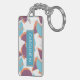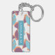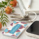 Durable rectangular key chain with classy, fun and contemporary pastel coral orange, violet purple, teal turquoise, light medium and dark blue coloured abstract geometric triangles, polka dots and half circles mosaic pattern design on a white background. With room to customise or personalise with name of your choice. Stylish, modern and cool customisable style for the fashionable woman. To attach to your purse or backpack zipper, to hold loyalty rewards or membership cards, or of course... to hold keys! What ever keys you want to stay in place and hold together, a unique personalised key ring will make it look nicer and also easier to recognise as your own set. Click on our store name to check out more unique key holders with other custom designs.