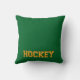 Custom Hockey Pillow with Your TEXT and Hockey PHOTO, on the back. Change Green and a Gold a Hockey Gifts Background and Text COLORS, Name and Number, are customisable. See how to Change the COLORS below to you