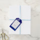 A gift tag with custom script letters on a blue and white pine pattern, or customise it to change fonts and more, even save your design for later.