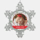 Custom Holiday Photo | Mistletoe Pattern Snowflake Pewter Christmas Ornament