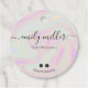 Custom Round Holographic Calligraphy Script Hang Tag. Personalise this design template to create unique retail tags for your products and business. Features elegant signature script font, modern design and faux holographic image background.