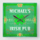 Custom Home Bar Irish Pub Green Wood with Name Square Wall Clock