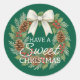 This beautifully designed holiday gift favor tag features the text "Have a Sweet Christmas" and showcases elegant watercolor artwork of a wreath embellished with a white bow, pinecones, green holly leaves, red berries, and pine needles. Its classy yet rustic design captures the essence of the December holiday season and appeals to those who appreciate artistic illustrations. The label offers customization options, allowing you to personalize it with your seasonal greeting, making it a thoughtful choice for spreading holiday cheer. These stickers will give your baking projects a unique and professional look!