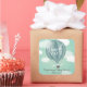 Customise this lovely stylish Boy Baby Shower Thank You Stickers featuring an original illustration of a blue striped hot air balloon flying high in the blue sky with white clouds. Matching Baby Shower Invitation can be found here: