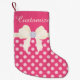 Custom Hot Pink Dotted w/Cream Bow & Diamonds Small Christmas Stocking