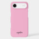 Show off your style with this vibrant hot pink phone case featuring a personalized name in elegant black cursive. Designed for iPhone 17 and compatible with other models, this sleek case combines bold color with a minimalist touch. The smooth finish and precise camera cutouts ensure both protection and flair. Perfect for gifting or adding a personal twist to your tech.