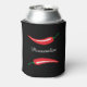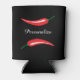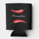 Custom hot red chilli pepper beverage can cooler. Personalised spicy food vegetable icon with name, monogram or funny quote. Add your own text to the template. Fun design for Birthday party, BBQ, wedding, dinner party, etc.