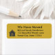 Label says we have moved and can be personalised with your name and new address. The is a pentagon shaped house next to the text.
