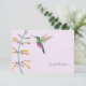 Cute note cards featuring a female Blue-throated Starfrontlet Hummingbird and a flower on a pale pink background.
