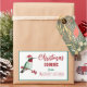 Cute custom sticker featuring a ruby-throated hummingbird wearing a Santa hat. The font styles and font sizes can be changed by clicking on "Edit using design tool".