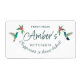 This pretty customisable label is featuring hummingbirds and 4 o'clock flowers on an aqua blue background. The font size and font style can be changed by clicking on "Edit using design tool". All hummingbird images are taken from original watercolors by C. Dobbins.