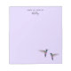 Custom notepad featuring two blue-throated Starfrontlet Hummingbirds on a pale purple background. The font style, size and colour can be changed by clicking on "customise further".