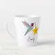 Custom latte mug featuring Anna's Hummingbirds with star ornaments. Just add your name. The font style and font size can be changed by clicking on "Edit using design tool".