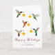 Cute custom Happy Holidays card for hummingbird lovers featuring Rufous hummingbirds, Allen's, and Ruby-throated hummingbirds carrying stars. The font style and size as well as the inside message can be changed by clicking on "Edit using design tool." The inside message can also be deleted for your handwritten message.
