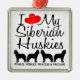 Custom I Love My Four Siberian Huskies Metal Tree Decoration