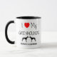 This custom "I Love My Greyhounds" mug is perfect for anyone who owns two Greyhounds, just add your own dog names.