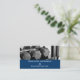 The Modern Custom Image New Customer Reward Thank You Referral Card template is part of the Blue Business Card Designs & Marketing Items Collection and is in landscape format. The fitness centre referral card has placeholders on the front for a custom black-and-white image, the gym's name, and its logo. The card is a standard US business card size of 3.5 x 2 inches. The back has space for terms, with space for a tracking ID and validity date at the top. On the left are handwriting fields for the new customer and the referrer. Along the bottom left border is a QR code with a CTA (call to action) to scan to find course schedules. To the right is a map extract showing the gym's location. The company contact and address details are above.