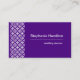 A business card featuring indigo and white colours combination