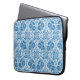 Custom Indigo Blue Floral Faux Lace Pattern Laptop Sleeve