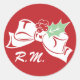 Custom holiday stickers with initials. Decorate your Holiday or Christmas letters and mailings with these retro style stickers featuring a white bow with holly leaf and berries with a red background.