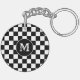Custom Initial, Black White Checkered Keychain