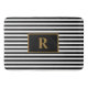 Custom Initial Black/White Stripes Bath Mat